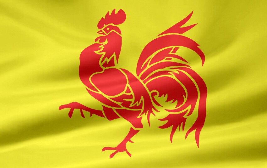 La bandiera della Vallonia raffigura un gallo rosso su fondo giallo, ed è nota in francese come le coq hardi, il gallo ardito. Il gallo non è un simbolo recente: era già presente nelle rappresentazioni della contea di Namur nel Medioevo e fu recuperato come emblema della resistenza vallona durante la dominazione olandese del XIX secolo. La versione attuale della bandiera, con il gallo dalle ali spiegate, gli artigli e il becco rossi su fondo dorato, fu adottata ufficialmente nel 1913 durante il primo Congresso Vallone, che sancì l’identità regionale francofona in contrapposizione alla crescente affermazione politica del movimento fiammingo.